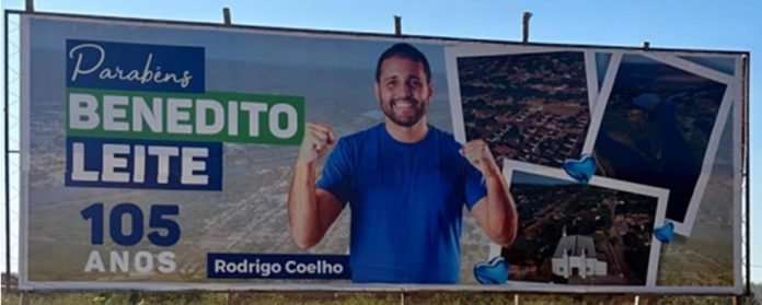 Coelho havia instalado um outdoor à beira de uma rodovia, em trecho que dá acesso à cidade. A peça trazia uma foto dele e uma mensagem em que parabenizava o município pelo aniversário de 105 anos, celebrado em julho deste ano.
