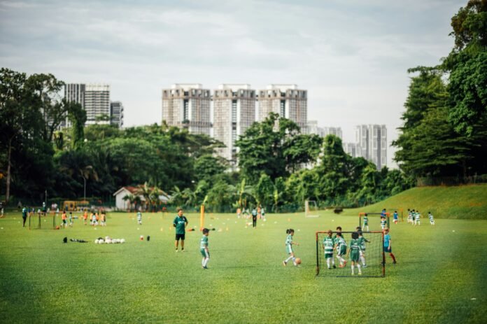 crianças jogando futebol,