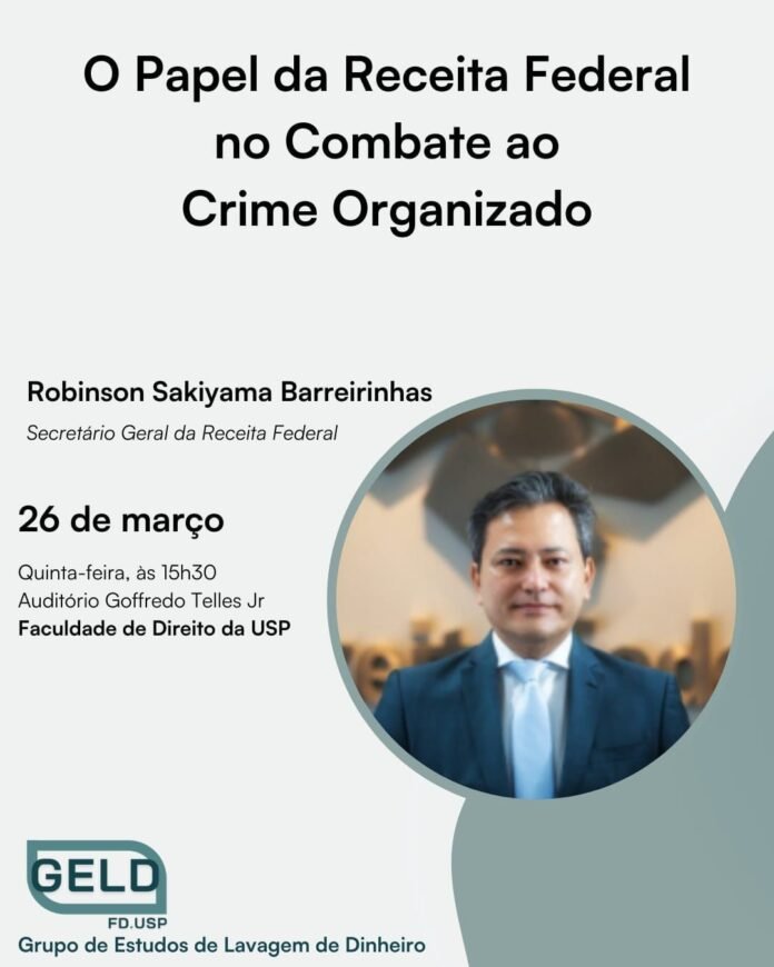 O Grupo de Estudos de Lavagem de Dinheiro da Faculdade de Direito da USP (GELD – FDUSP) promoverá na próxima semana um encontro com o secretário-geral da Receita Federal, Robinson Sakiyama Barreirinhas, para debater o papel do órgão no combate ao crime organizado.